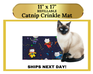 Our large mats (17" x 17") Refillable "Crinkle" Catnip Mat comes filled with 1 cup of our freshest Catnip, which is sure to be a hit with your cat. And the best part? You can easily refill the mat through the opening on the back, ensuring the catnip stays inside.